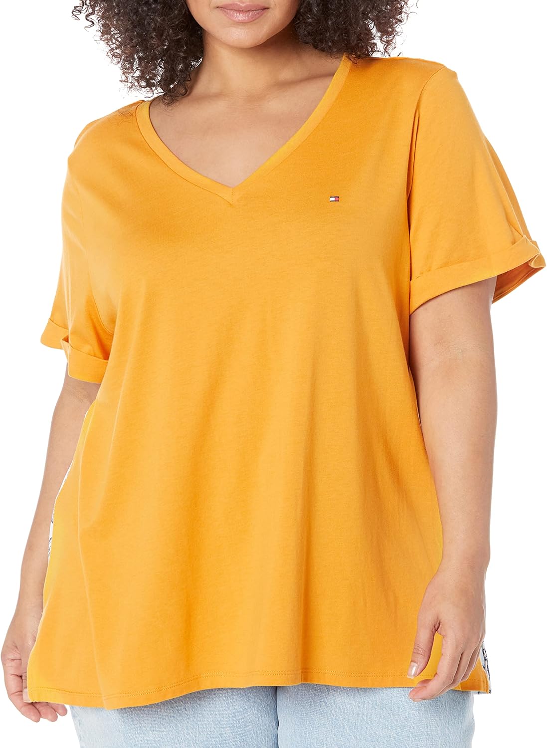 Tommy Hilfiger Womens Casual Mix Media Short Sleeve V-neckT-Shirt