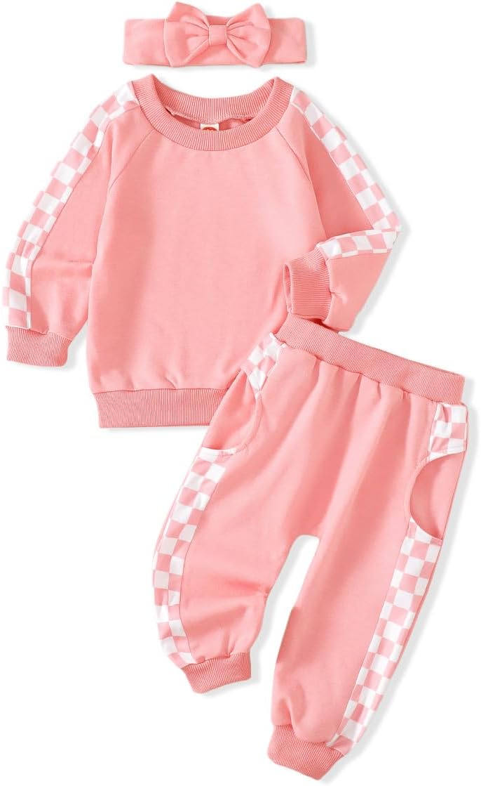 AMAWMW Infant Baby Girl Clothes Long Sleeve Loose Sweatshirts Pockets Pants Headband Outfits Fall Winter Spring Gift