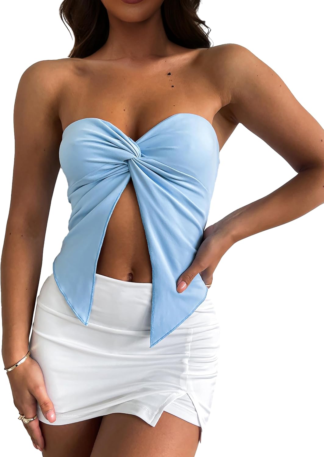 MISSACTIVER Women’s Y2K Sexy Twist Front Tube Top Strapless Sleeveless Solid Cut-Out Midriff Crop Tops Tank Top