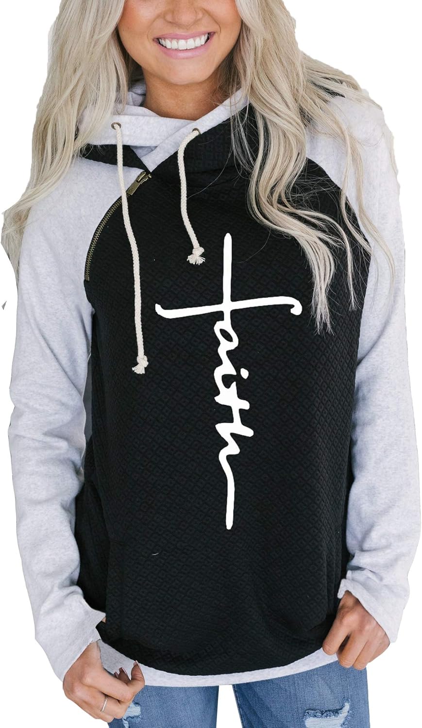 AELSON Women's Faith Print Hoodies Shirt Female Mama Bear casual Sweatshirts Tops Cute