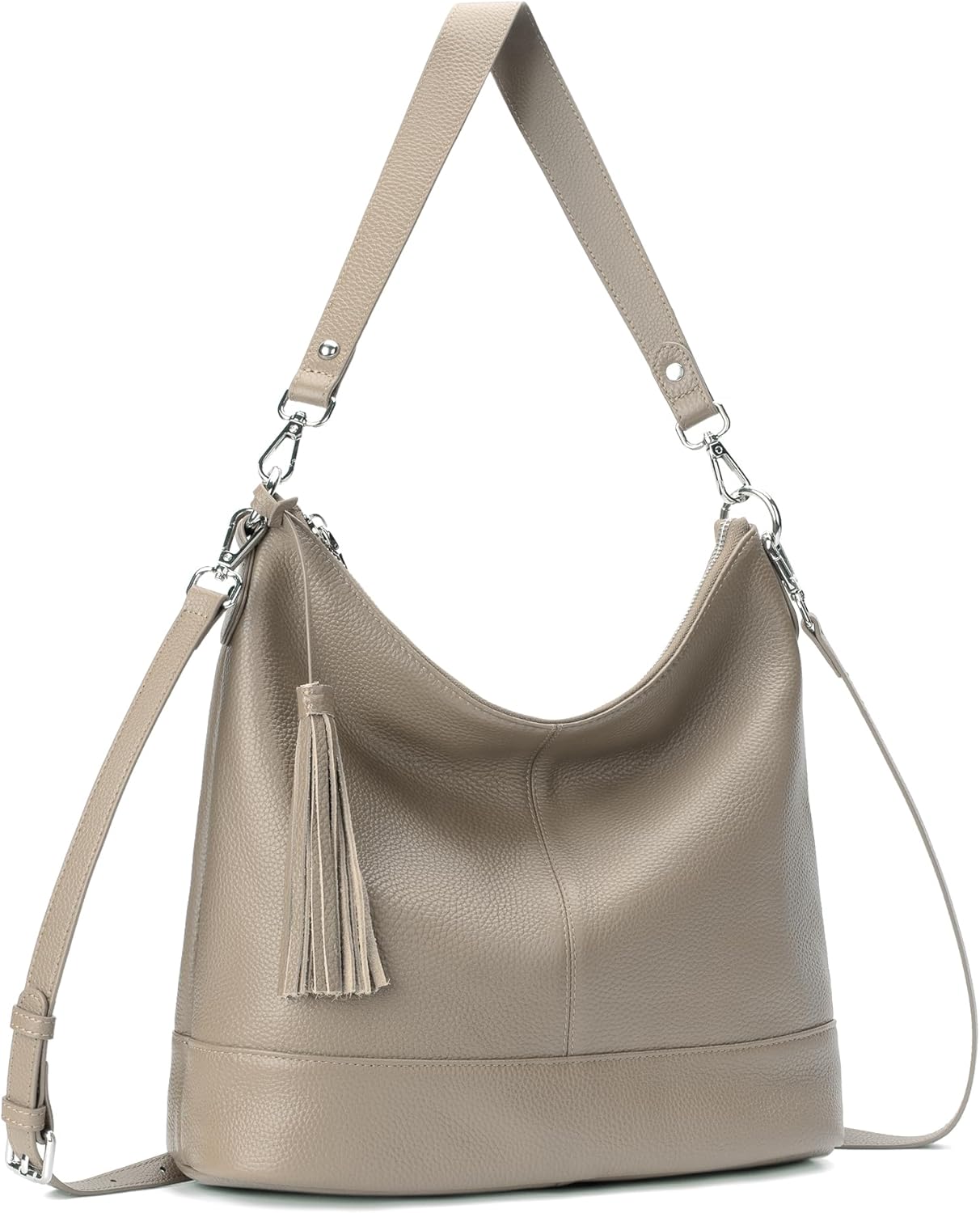 Genuine Leather Hobo Crossbody Bag for Women, Soft Real Leather Bucket, Shoulder Handbag Purse with 2 Removable Strap
