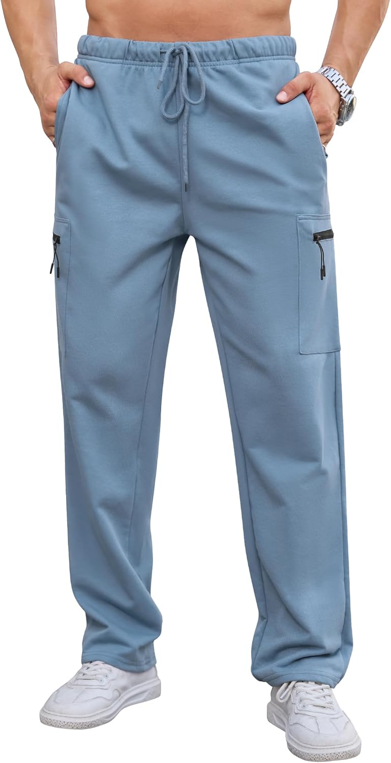SILKWORLD Sweatpants for Men Zipper Cargo Pockets Joggers Open Bottom Casual Pants for Athletic, Jogging, Running, Workout
