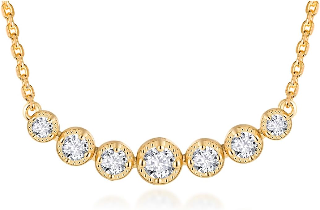 Moissanite and Sapphire/Ruby/Emerald Pendant Necklace for Women, Flower Bar/Curved Bar Design, Solid 925 Sterling Silver, 16"/18"/20" Adjustable, Anniversary Birthday Christmas Jewelry