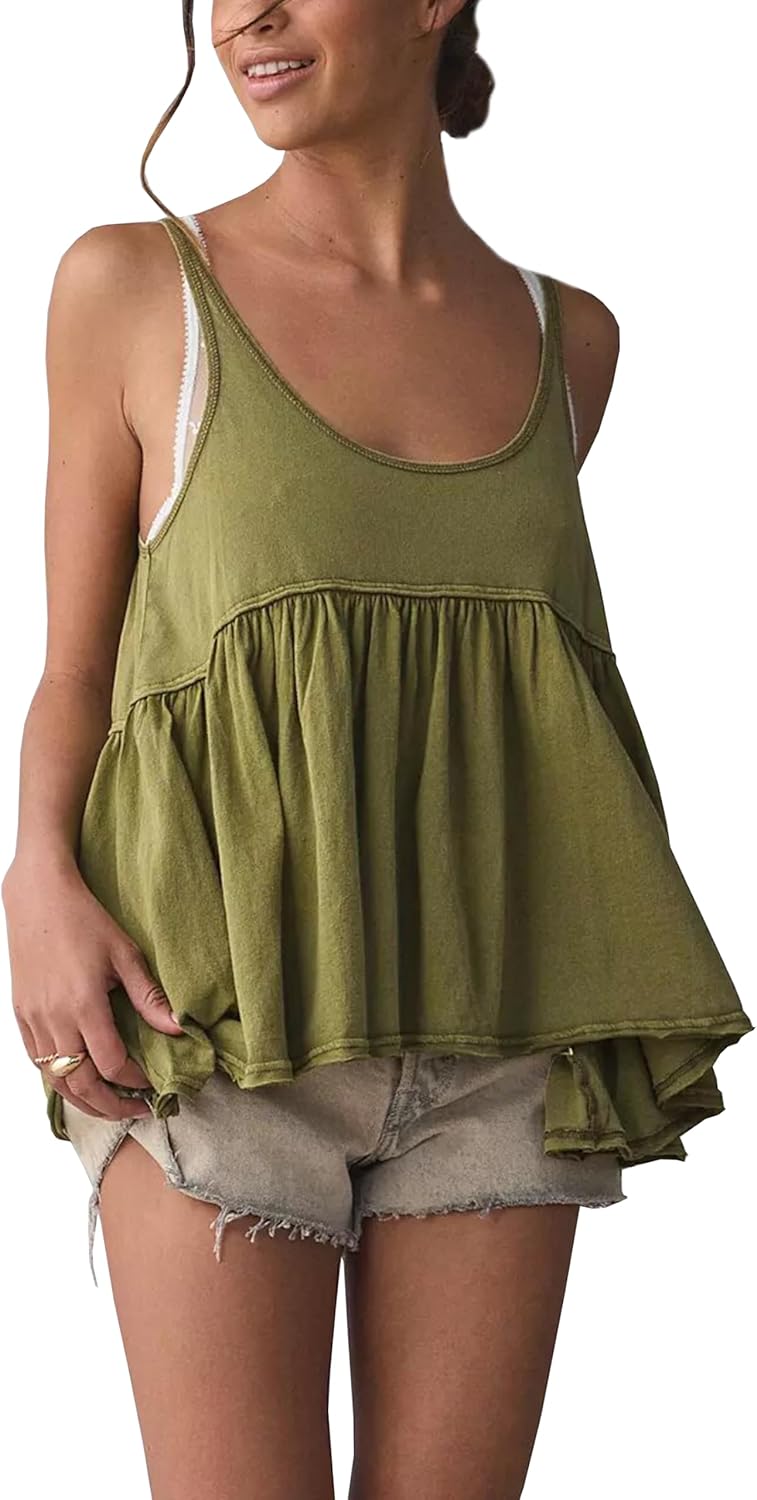 Lumister Womens Cute Babydoll Tops Sleeveless Ruffle Strap Causal T Shirts Tank Summer Tops 2025