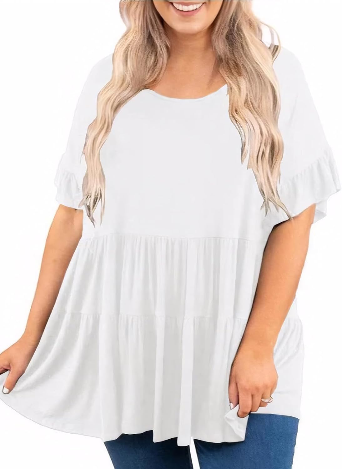 Beautife Womens Plus Size Babydoll Tops Ruffle Short Sleeve Peplum Flowy Shirts Summer Casual Loose Fit Tunic Blouses