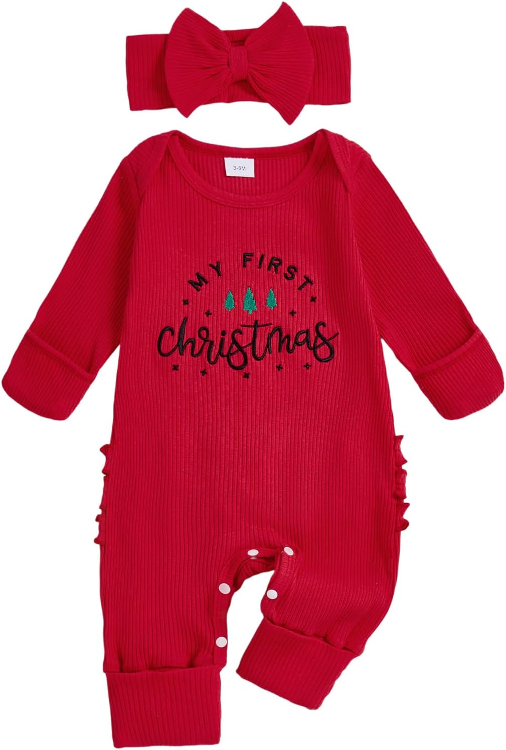 allshope Infant Baby Girl Christmas Outfit Jumpsuit My First Christmas Embroidery Romper Bodysuit Newborn Fall Clothes