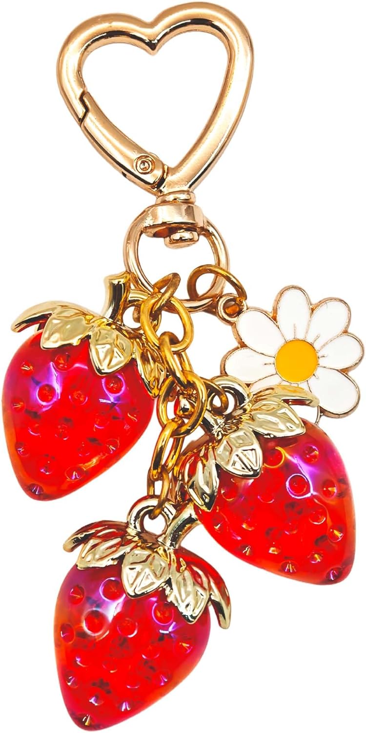 Strawberry Bag Charms Cherry Keychain Cute Sweet Berry Purse Charms Car Key Chain for Handbag Backpack Wallet Decor