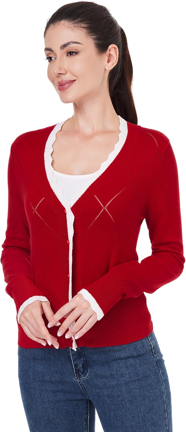 AmélieBoutik Women Lightweight Button Down Long Sleeve Casual V Neck Color Trim Soft Knit Fall Cardigan Sweater Tops