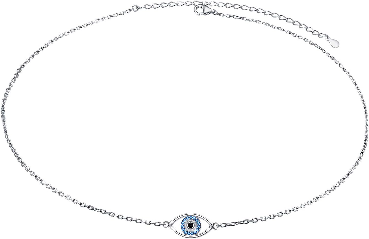 Alphm S925 Sterling Silver Evil Eye Choker Short Dainty Adjustable Pendant Necklac for Women Jewelry