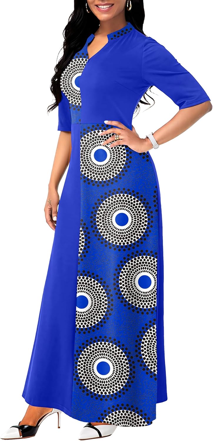 Runwind Maxi Long Dress for Women - Casual Church A-Line Elegant Cocktail Dresses V Neck