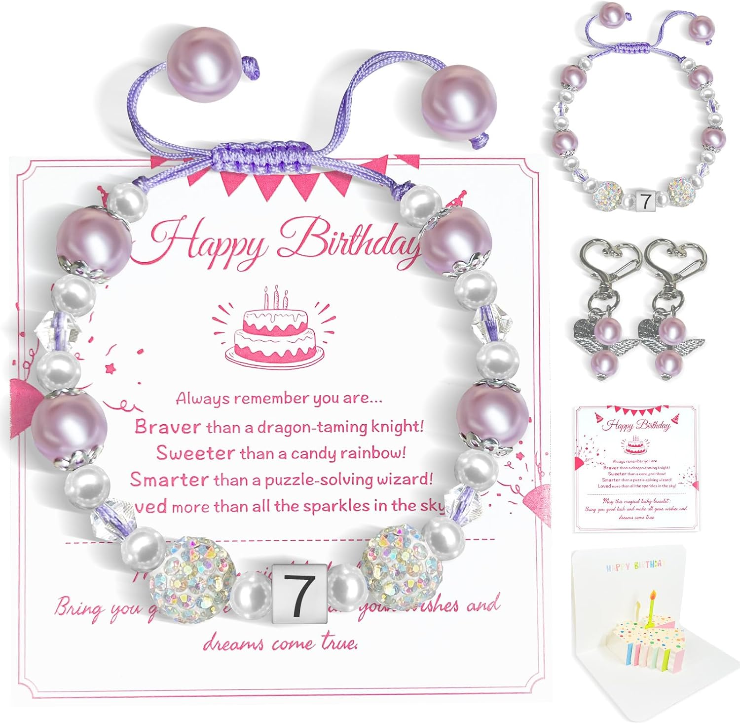 Birthday Gifts Set for Girls with 3D Birthday Card for 3 4 5 6 7 8 Adjustable Girls Bracelet with Mom&Daughter Pendants as Birthday Gifts for Daughter Granddaughter Niece