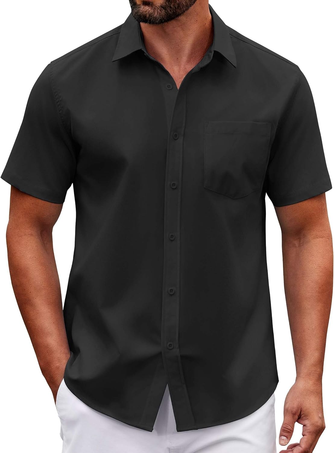 COOFANDY Mens Wrinkle Free Dress Shirt Short Sleeve Button Down Print Shirt Summer Business Casual Shirts with Pocket