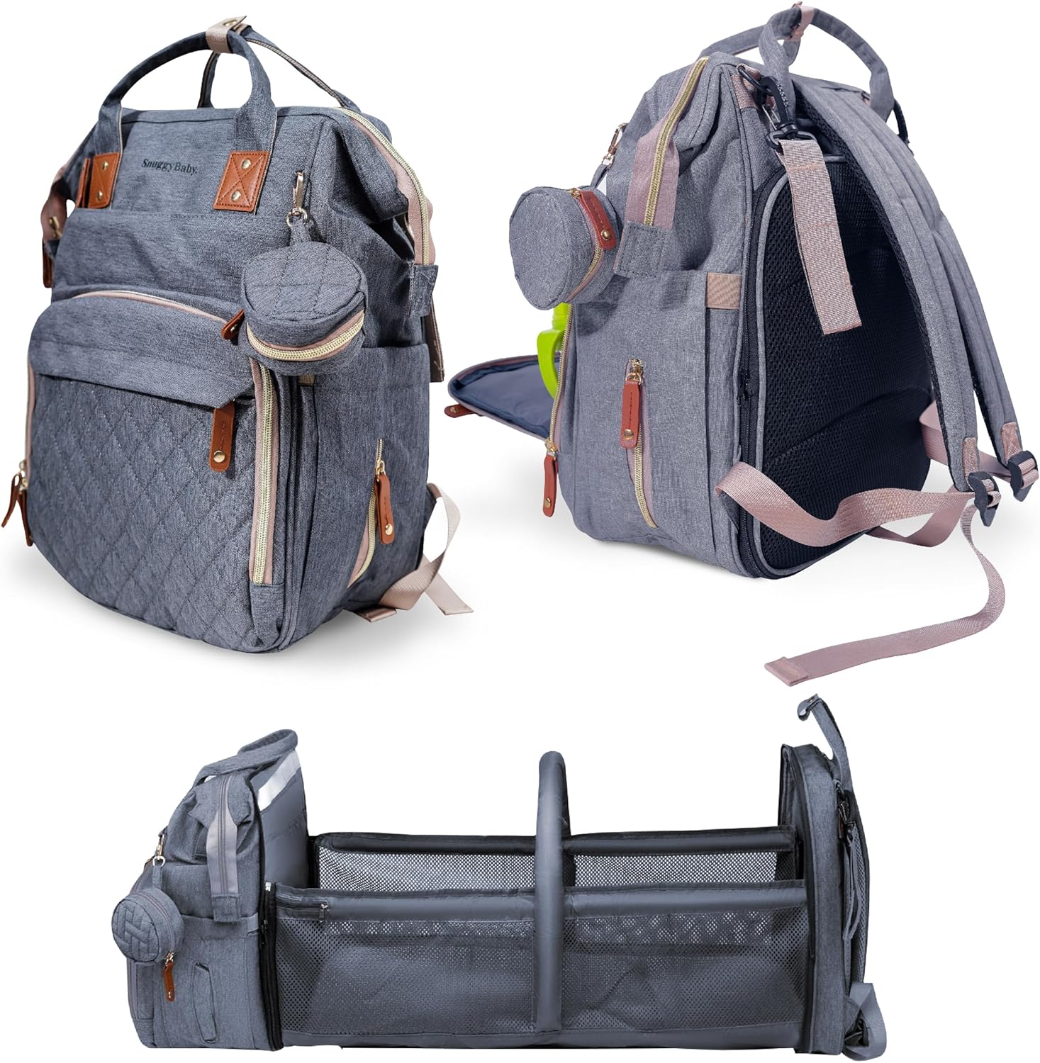 SNUGGY BABY Diaper Bag with Changing Station, Diaper Backpack with Changing Pad, Portable Diaper Organizer, Insulated Bottle Holders, Large Capacity, Water-resistant Travel Bag (Gray)