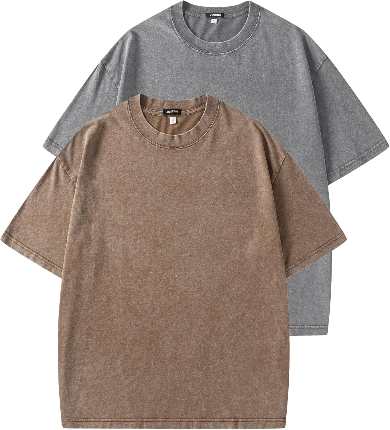 JMIERR 2 Pack Oversized T Shirts for Men Women Vintage Wash 100% Cotton Crewneck Heavyweight Tee Tops