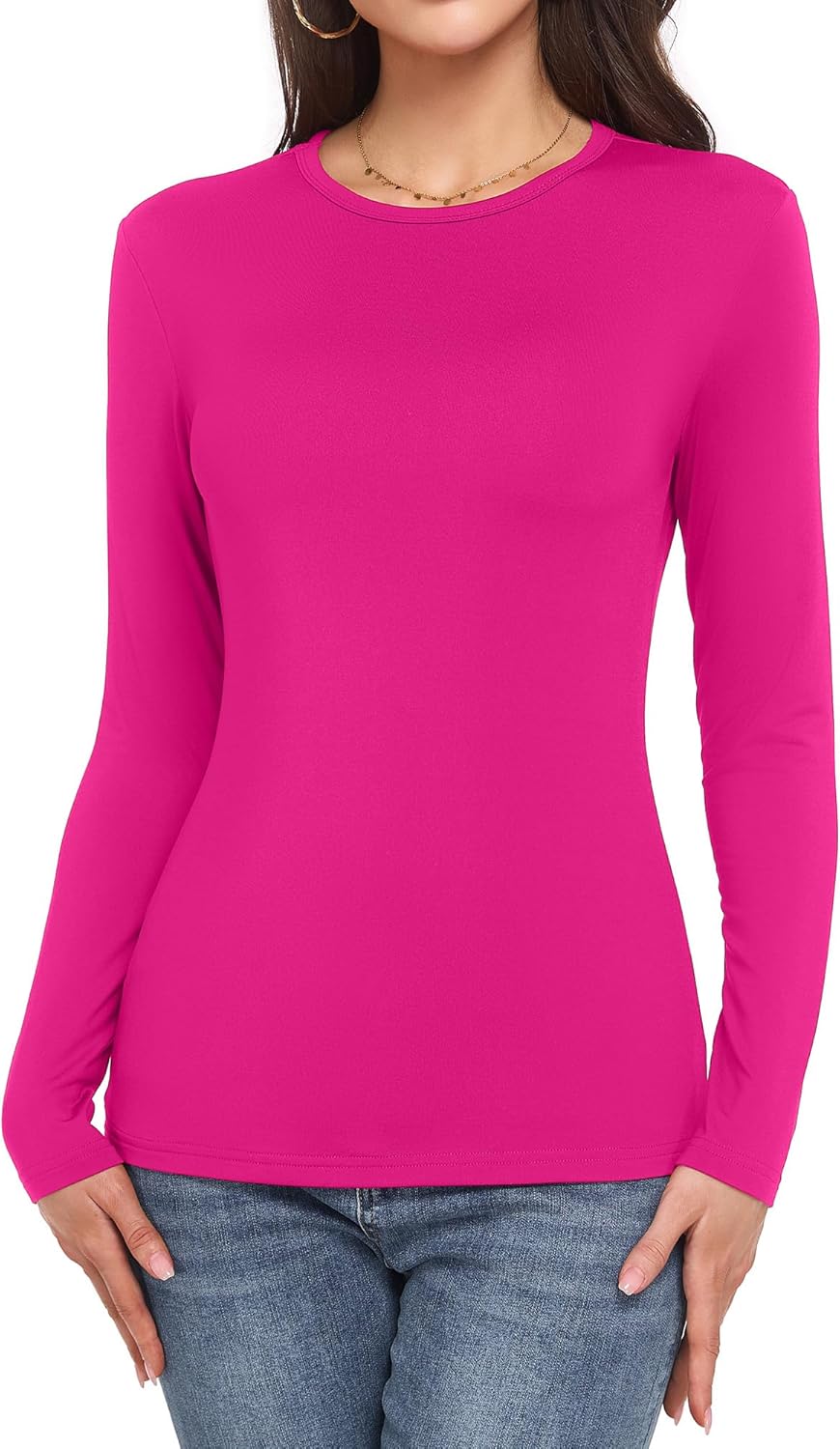 Long Sleeve Shirts for Women Crew Neck Lightweight Slim Fit Fall Going Out Tops Underscrub Winter Clothes