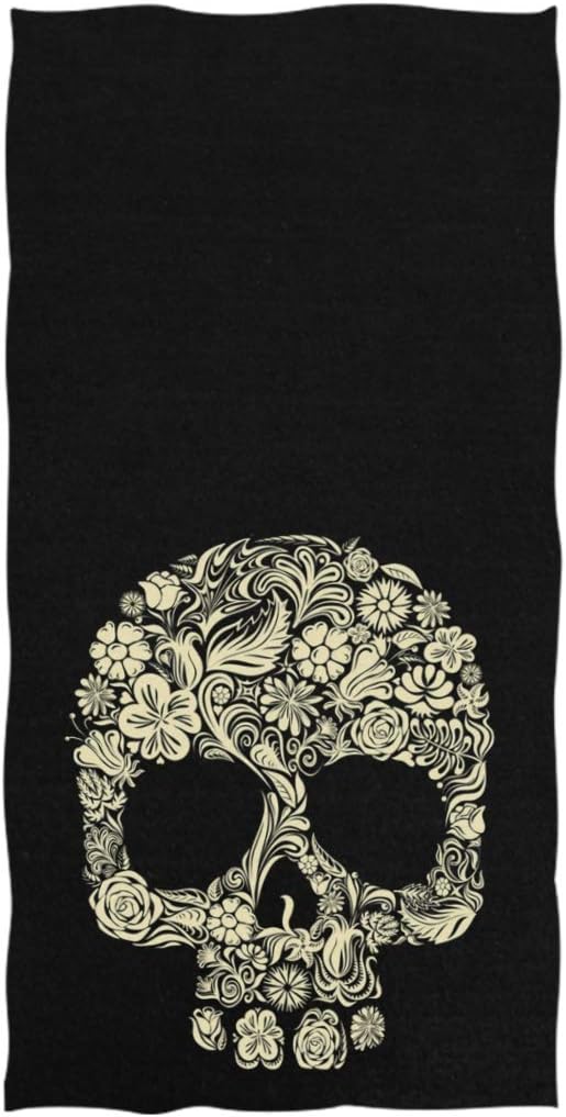Naanle Chic Floral Skull Pattern Soft Large Hand Towels Multipurpose for Bathroom, Hotel, Gym and Spa (16" x 30",Black)