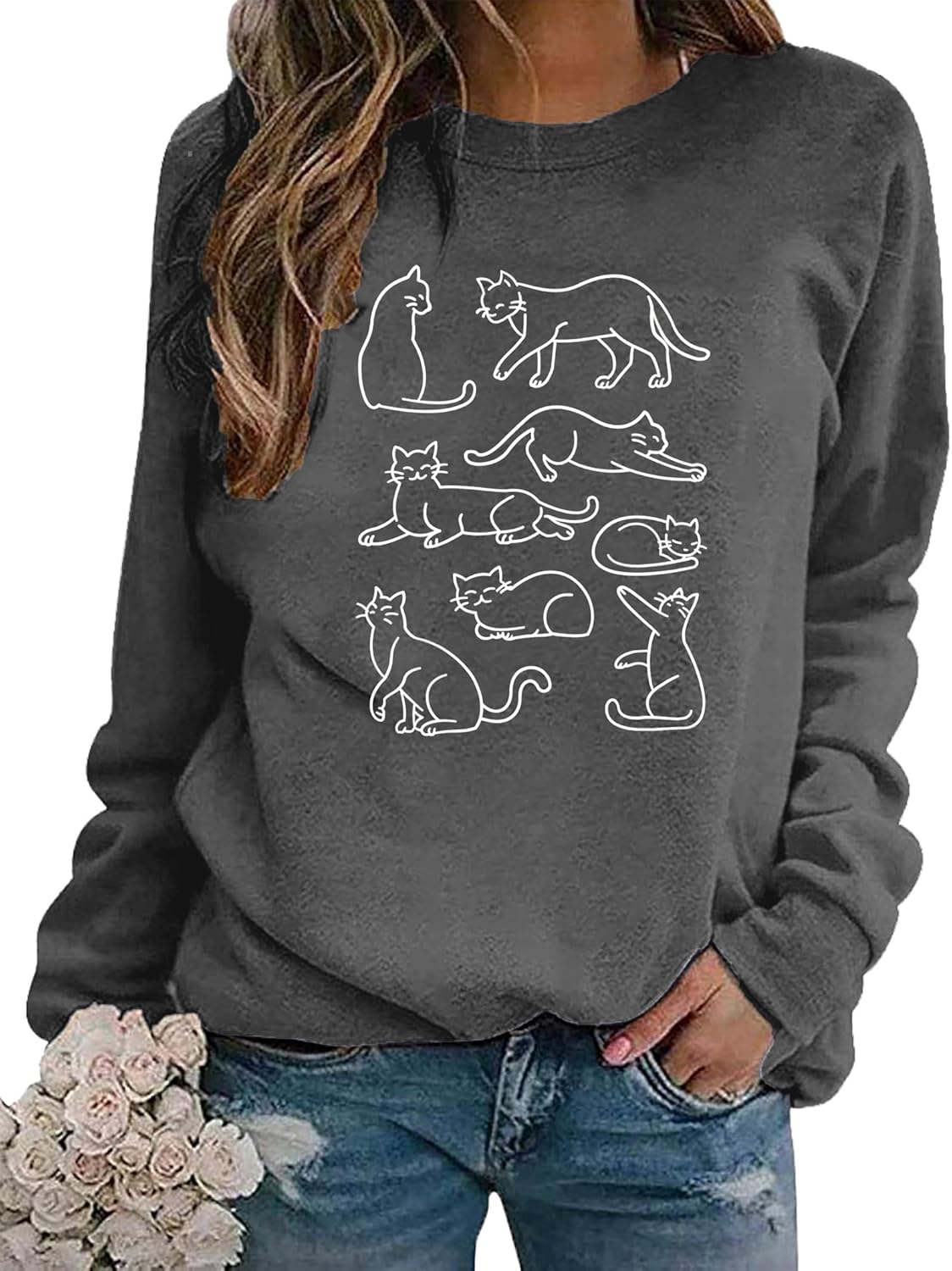 Cat Mom Sweatshirt for Women Mama Shirts Cute Animal Long Sleeve Letter Print Tops