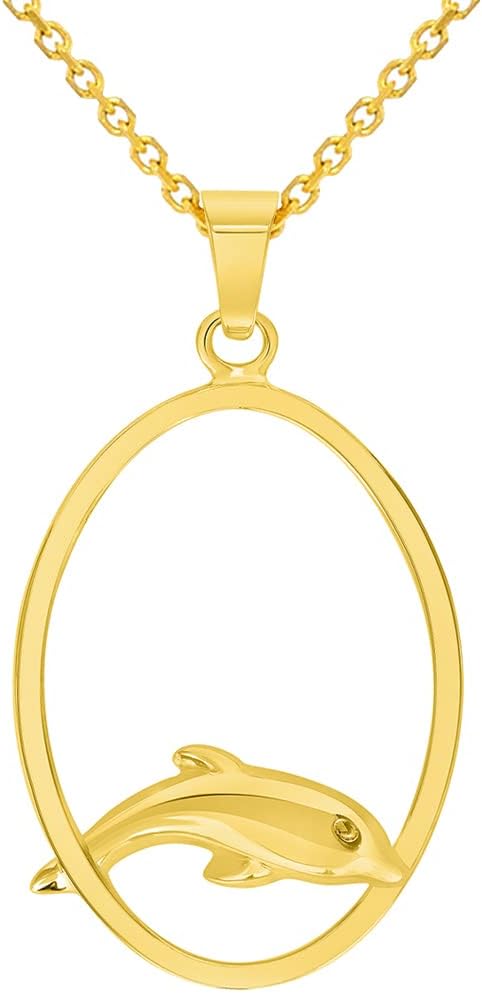 Jewelry America 14k Yellow Gold Dolphin Jumping Through Hoop Pendant Necklace