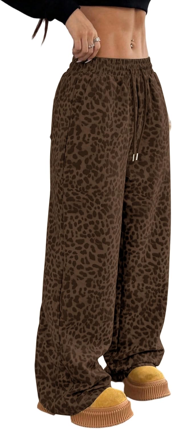Womens Leopard Baggy Sweatpants Cheetah Print Wide Leg Pants Elastic Waist Drawstring Trousers with Pockets