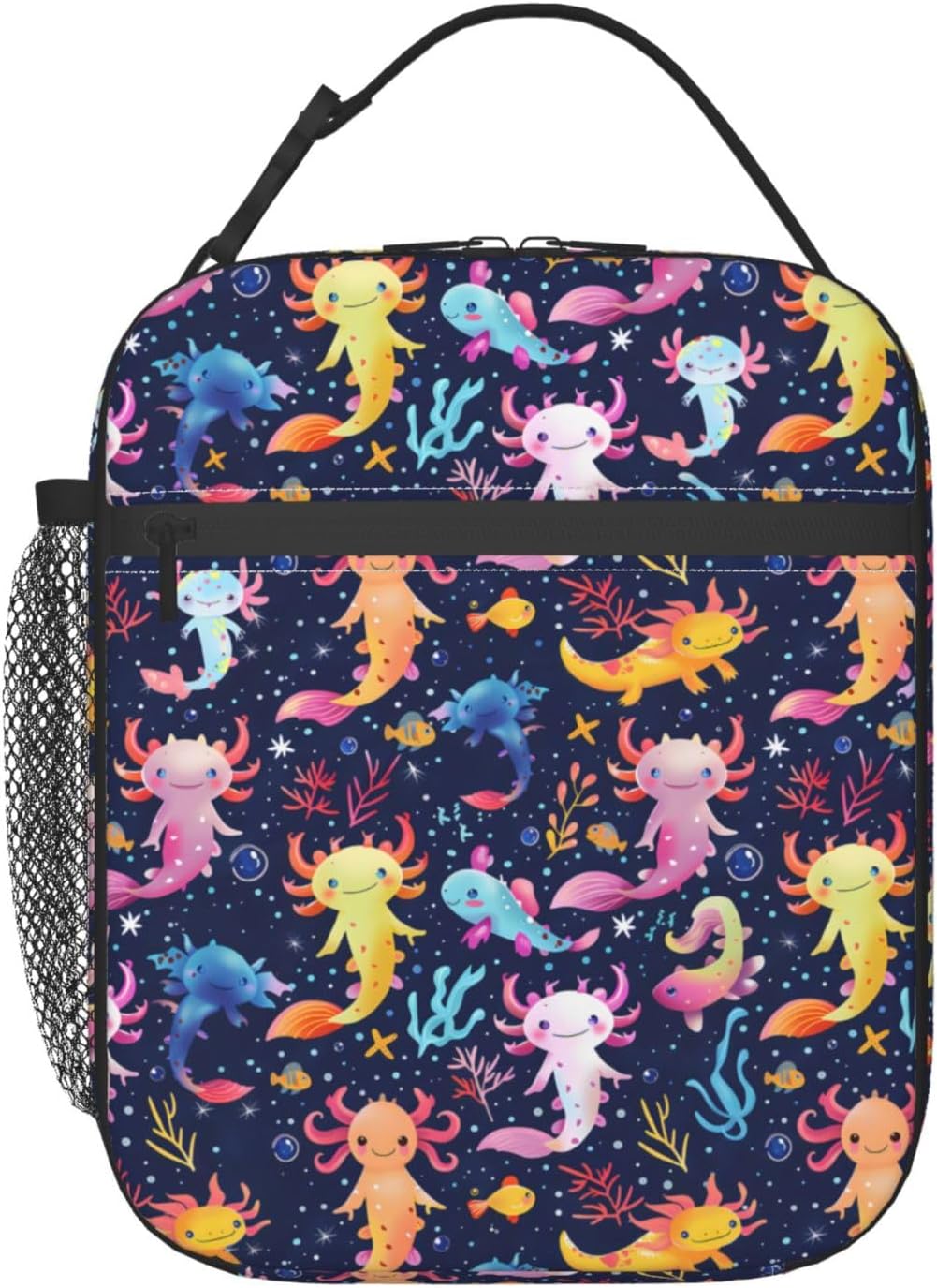 Reusable Axolotl Lunch Box for Kids Girls Boys Women Adult, Insulated Coral Reef Lunch Bag,Polyester Cooler Cute Handbags Case for School Picnic Work Travel Beach or Hiking (Dark Blue)