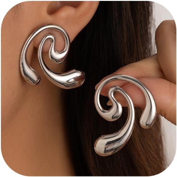 Statement Earrings for Women Gold Irregular Geometric Earrings Trendy Chunky Gold Earrings Spiral Statement Earrings Fashion Jewelry