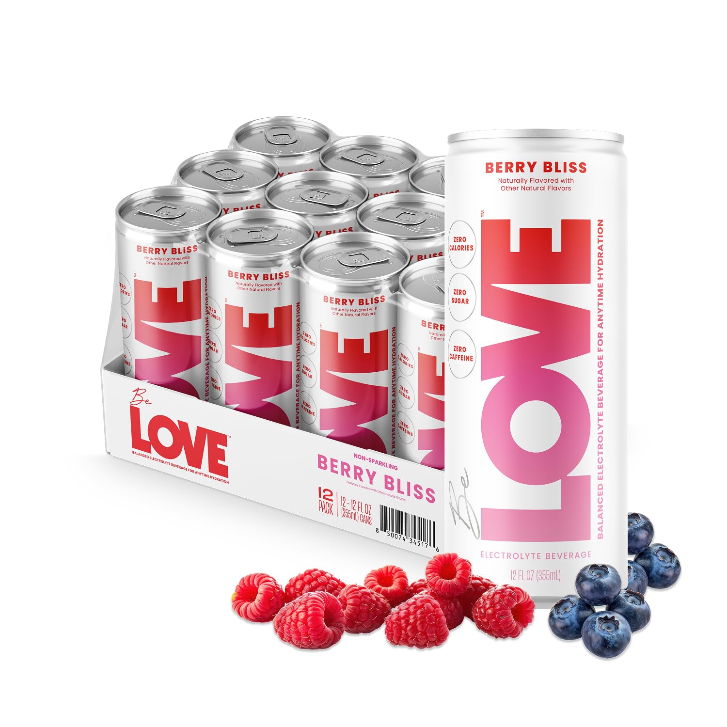 - PURE HYDRATION, PERFECTLY BALANCED - Be LOVE is a premium still beverage canned for crisp, refreshing hydration without the fizz of sparkling beverage. With the optimal balance of key electrolytes Magnesium, Potassium, and Sodium, and no sugar, caffeine, or artificial flavors, this clean and revitalizing beverage in berry bliss flavor keeps you feeling great all day long.