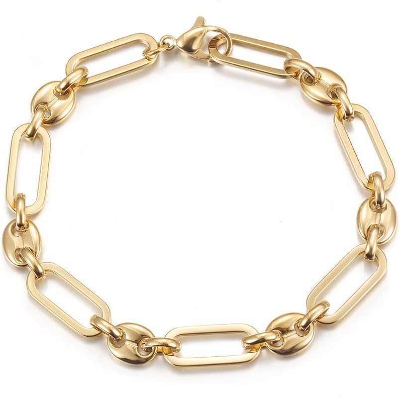 14K Gold Plated Bracelets for Women No Tarnish, Dainty Livit Chain Charm Bracelet with Coffee Bean, Minimalist Stacking Layered Link Jewelry, Fits 6.5”–7.3” Wrists
