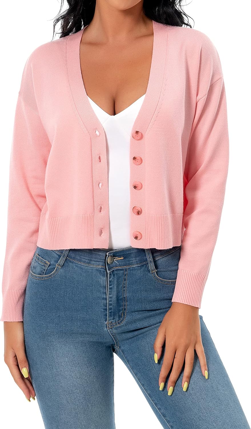Women's V Neck Long Sleeve Cropped Cardigan Sweaters Solid Button Down Knit Bolero Shrugs