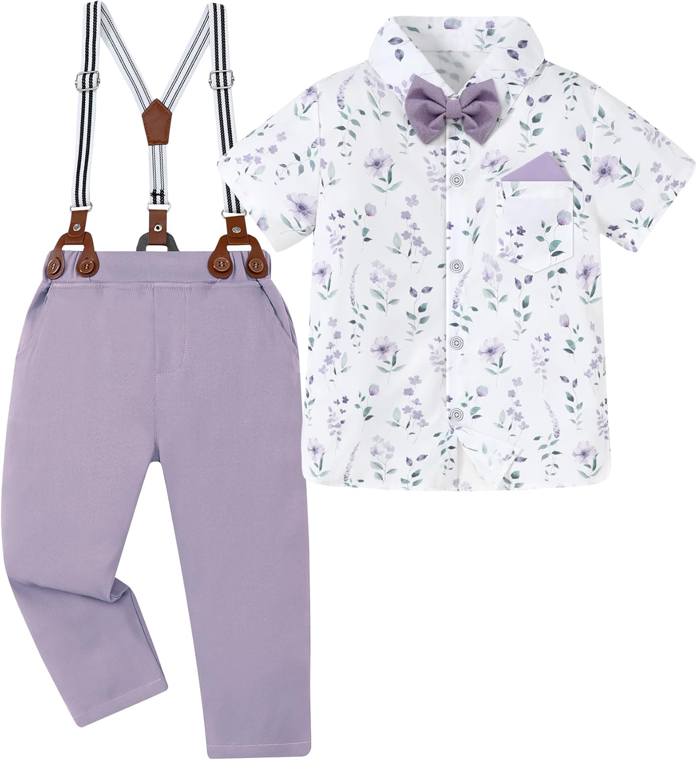 YUEMION Toddler Boy Clothes Suit Wedding Outfit Boys Dress Shirt+Bowtie+Suspender Pants, Kids Gentleman Formal Set 2-8 Years