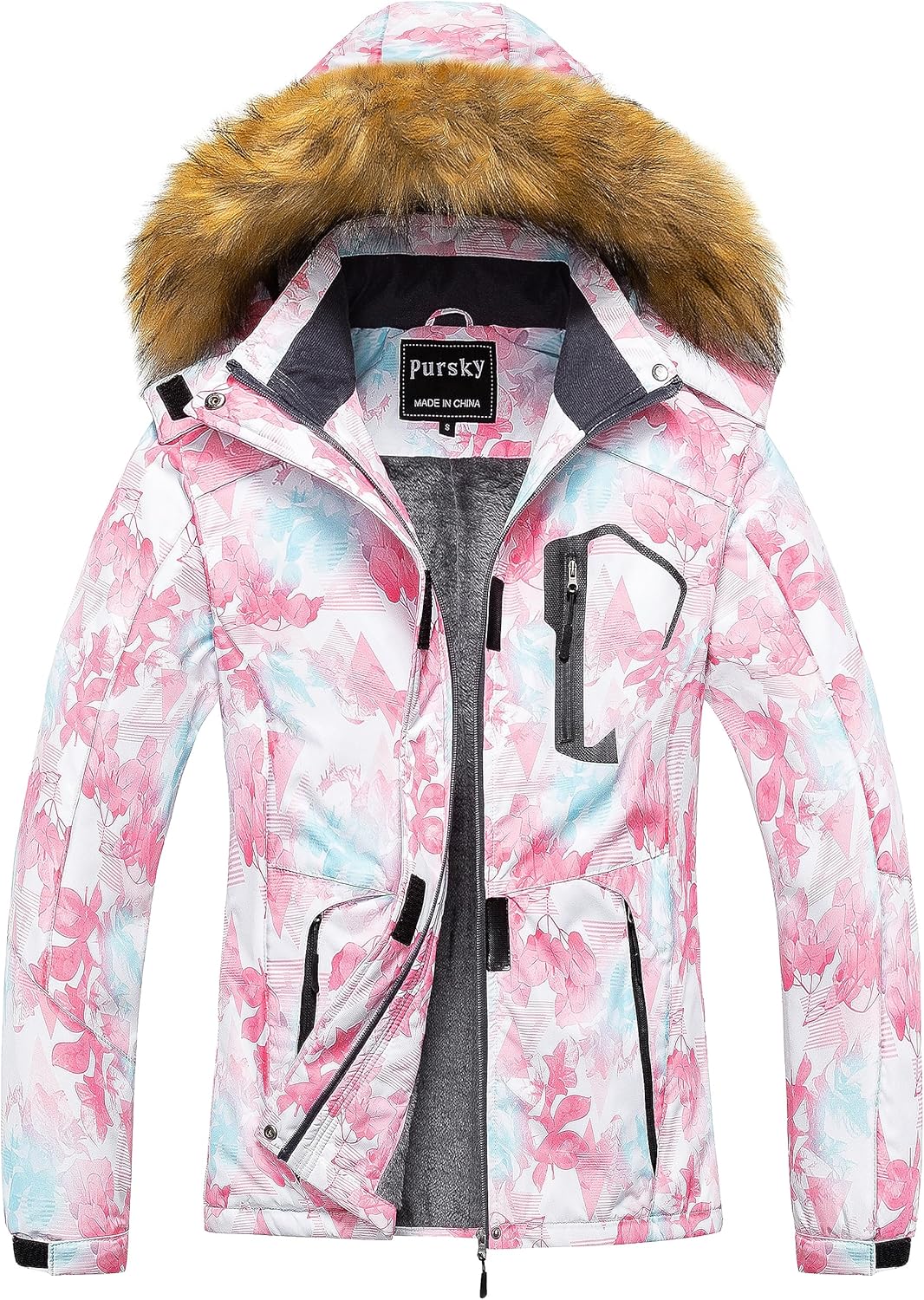 Pursky Women's Waterproof Ski Jacket Winter Snow Coats Fur Hooded Raincoat Parka
