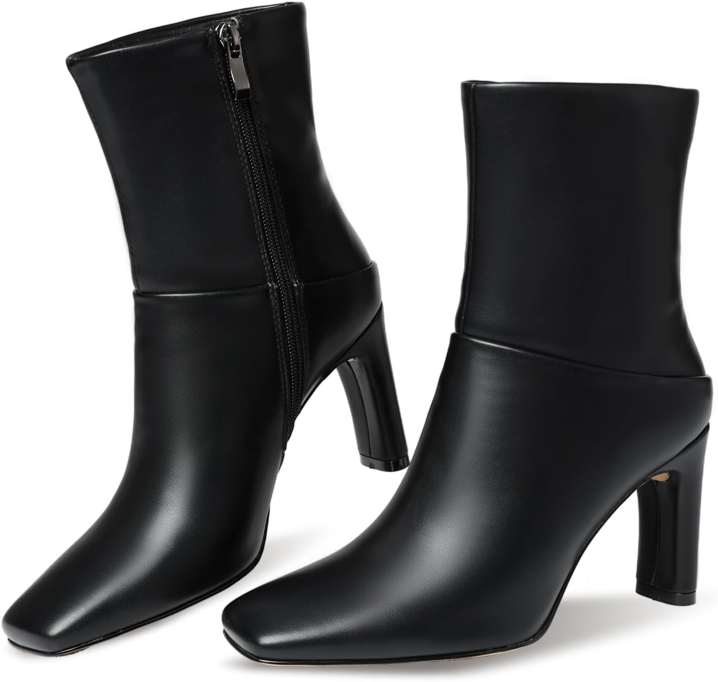 Attiposh Ankle Boots for Women Square Toe Short Boots Side Zipper Low Heel Ankle Booties Fashion Comfort Dressy Lady Shoes