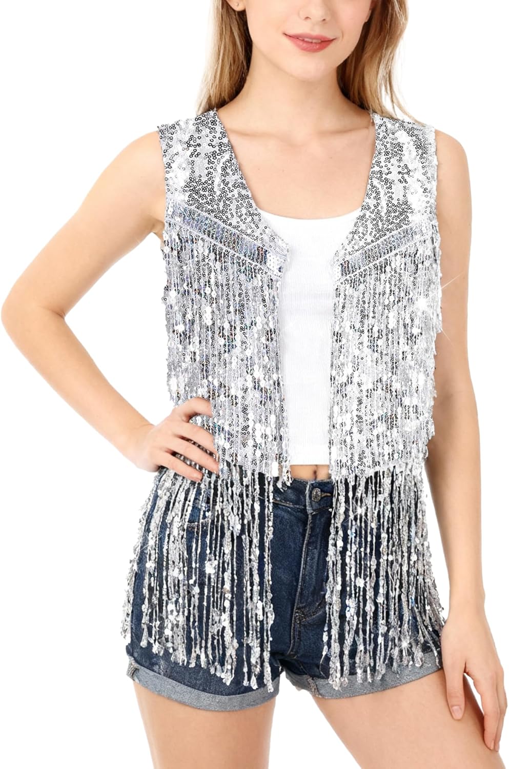 Women Fringe Vest 70s Hippie Costume Faux Suede Rivets Tassel Sleeveless Cowgirl Western Costume Jacket Outerwear
