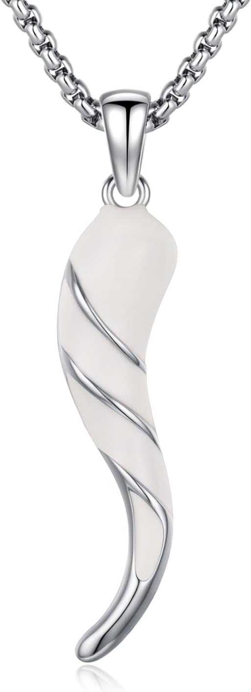 925 Sterling Silver Italian Horn Necklace Good Luck Cornicello Pendant with 22"+2" Stainless Steel Chain