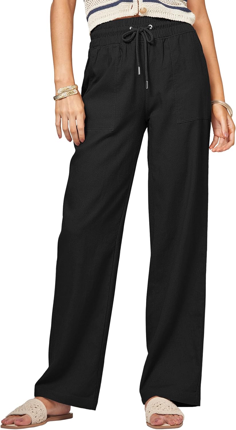 Women Linen Pants Wide Leg Palazzo Pants Linen Drawstring Pants with Pockets 31"