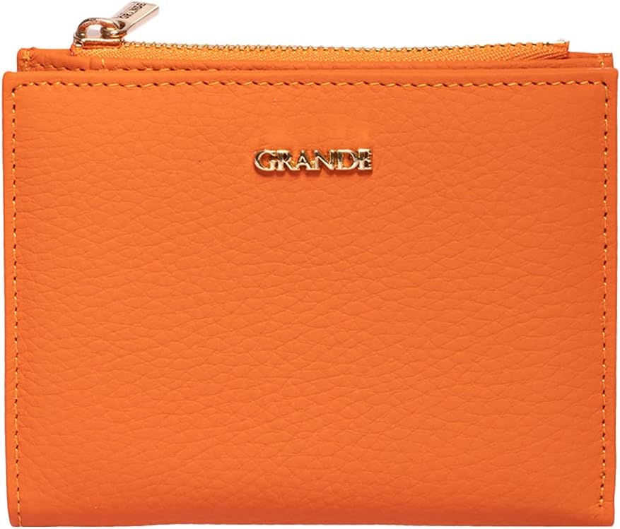 grande 2805 Genuine Leather Small Bifold Wallet For Women Minimalist Wallet Ladies Zippered Mini Purse Small Card Holder (Orange)