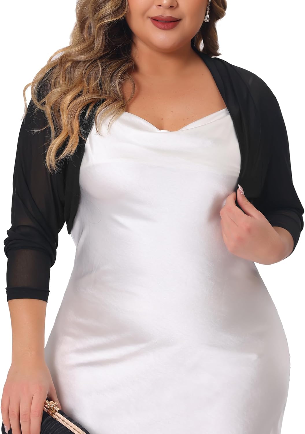 Agnes Orinda Plus Size Mesh Crop Cardigans for Women Long Sleeve Open Front See Through Sheer Bolero Shrug Top