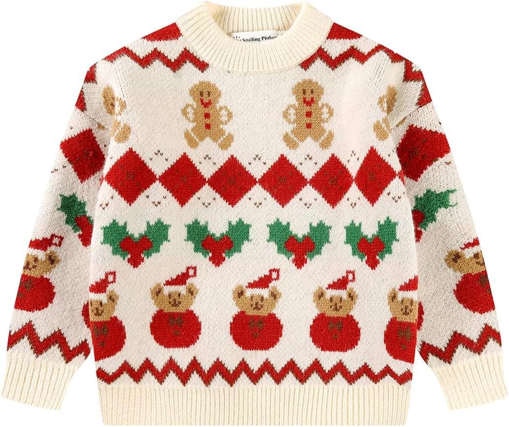 SMILING PINKER Little Girls Christmas Sweater Chunky Knitted Santa Reindeer Pullover Warm Winter Top