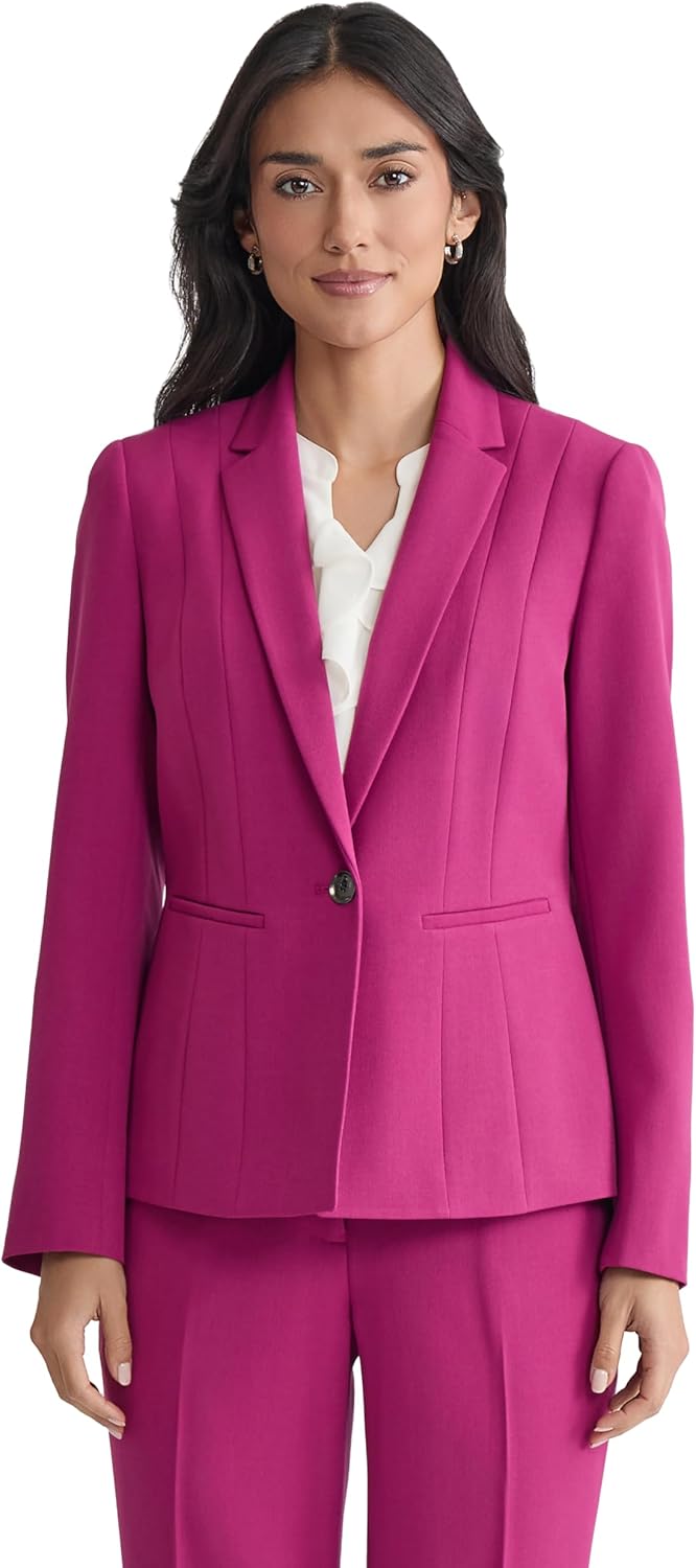 Kasper Womens One-Button Notch Collar Blazer with Seamed Waist – Compression Fit