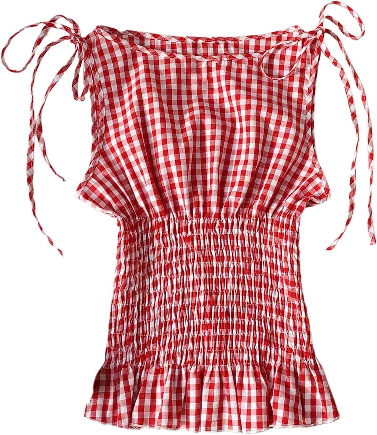 SweatyRocks Women's Gingham Plaid Ruffle Tie Knot Smocked Sleeveless Y2K Summer Tank Tops