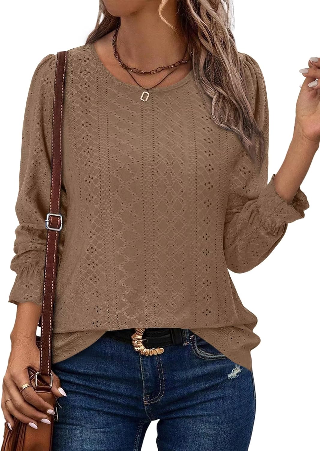 KISSMODA Women Eyelet Tops Long Sleeve Casual Office Blouse 2025 Ladies Trendy Autumn Fashion (S-3XL)