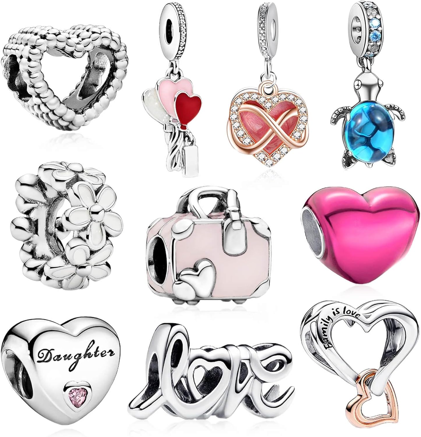 10 Pack Silver Charms for Bracelets and Necklaces Charms for Women Pendant Beads Set