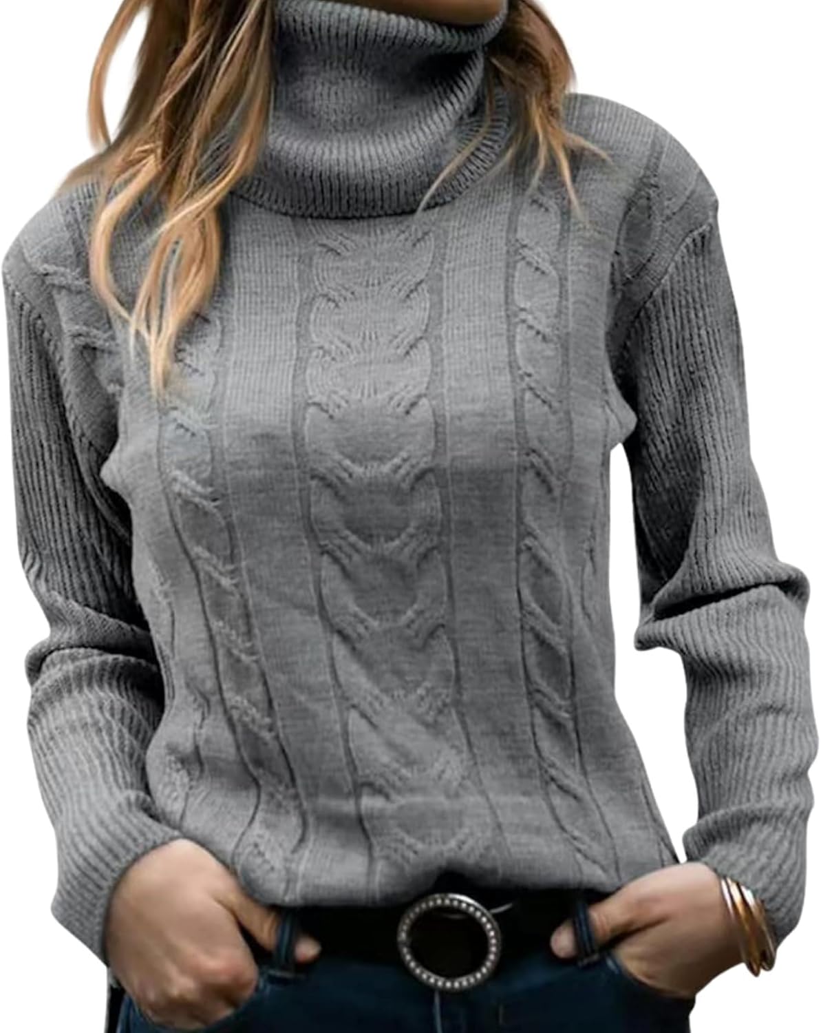 Women's Retro High Neck Pullover Sweater Long Sleeve Casual Warm Top for Vacation and Daily Wear