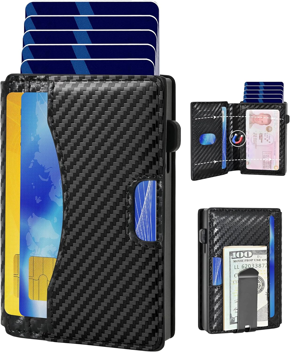 - 【INSTANT ACCESS】Simple toggle wallet for men With pop-up card holder design,the pop-up card case stores to up 5 cards,it offers instant card access at the tap of a button.With magnetic closure,you can easily accessible your wallet.