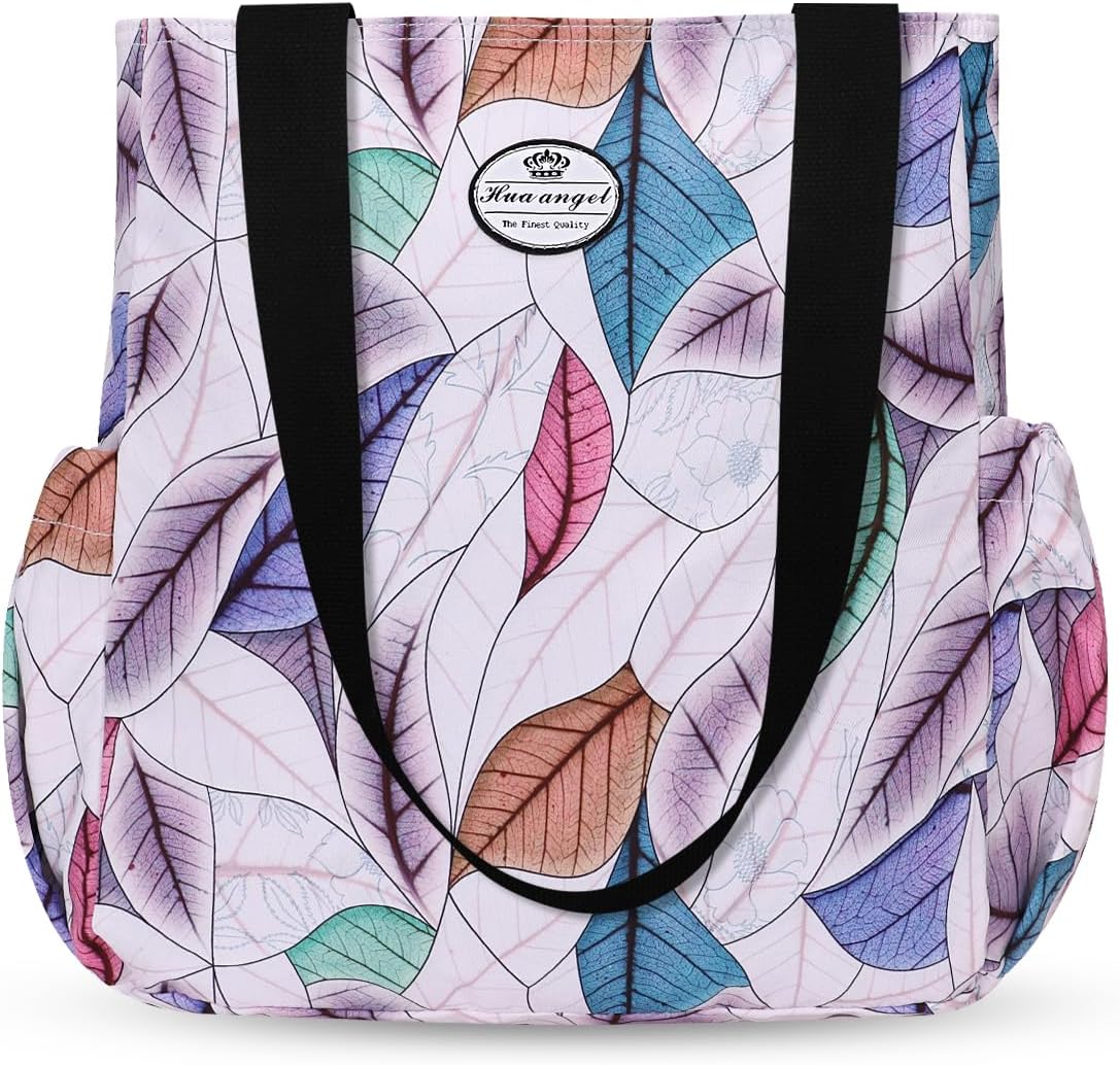 HUA ANGEL Floral Tote Bag - Casual Shoulder Bag Daily Tote Bag with Zipper Gym Travel Shopping Work Handbag for Women