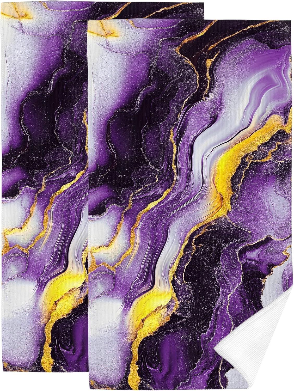 Purple Gold Hand Towels for Bathroom Set of 2 Soft Absorbent Purple Marble Decorative Hand Bath Towels Spa Gym Yoga Sport Home Farmhouse Abstract Modern Bathroom Decor 14x28 Inch