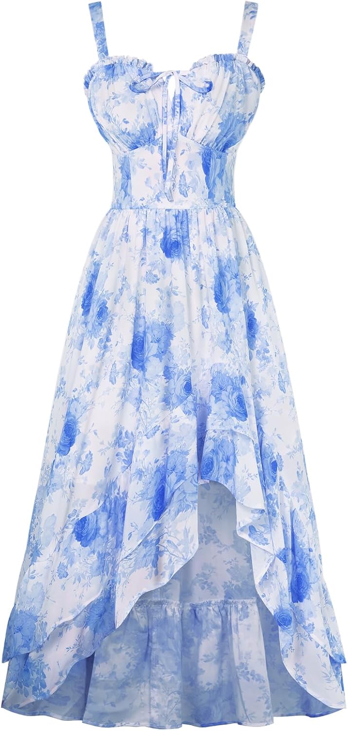 Scarlet Darkness Summer Dresses for Women 2026 Floral Corset Wedding Guest Dress Ruffle Maxi Dress with Pockets