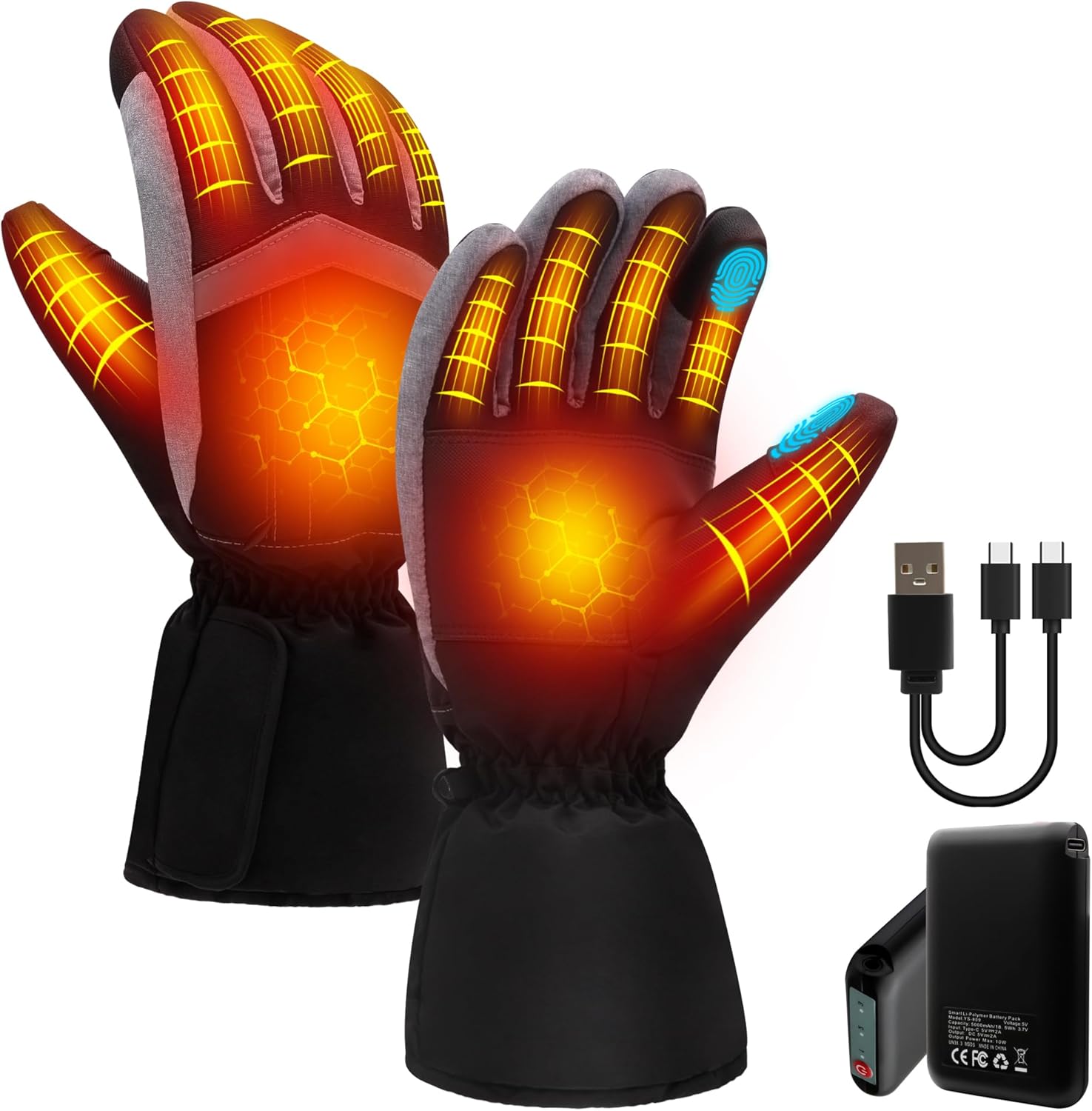 Heated Gloves for Men Women, Rechargeable Electric Gloves Waterproof&Windproof, Touchscreen, Non-Slip Grip with 3 Heating Levels for Motorcycling, Skiing, Outdoor Work & Winter Sports