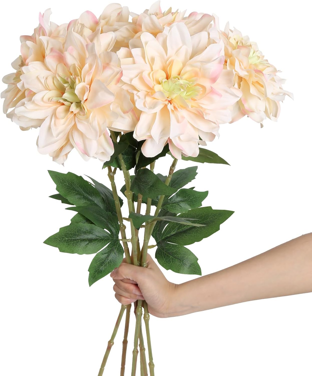 Faux Dahlia Flowers,6PCS Champagne Flower 23.62" Artificial Dahlia Silk Flowers for Wedding Party Home Centerpieces Arrangements Bouquets(Champagne)
