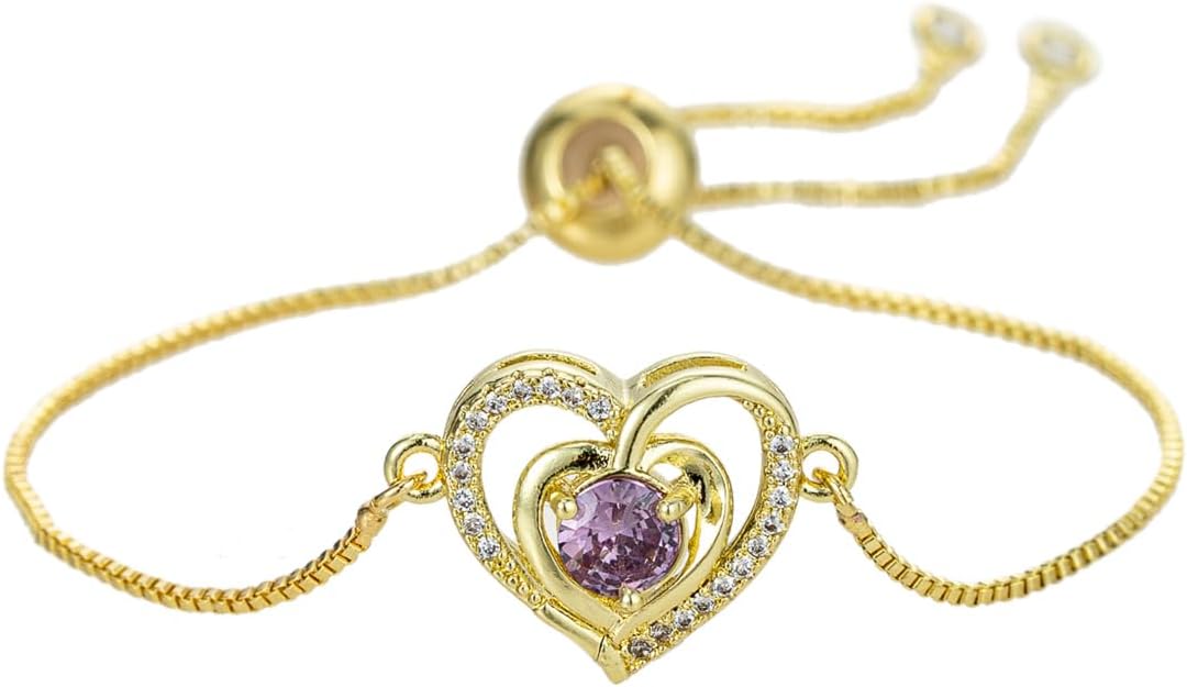 14K White Gold Plated Heart Bracelet for Women Zircon Inlay Love Heart Charm Chain Bracelet Bangle with Adjustable Length
