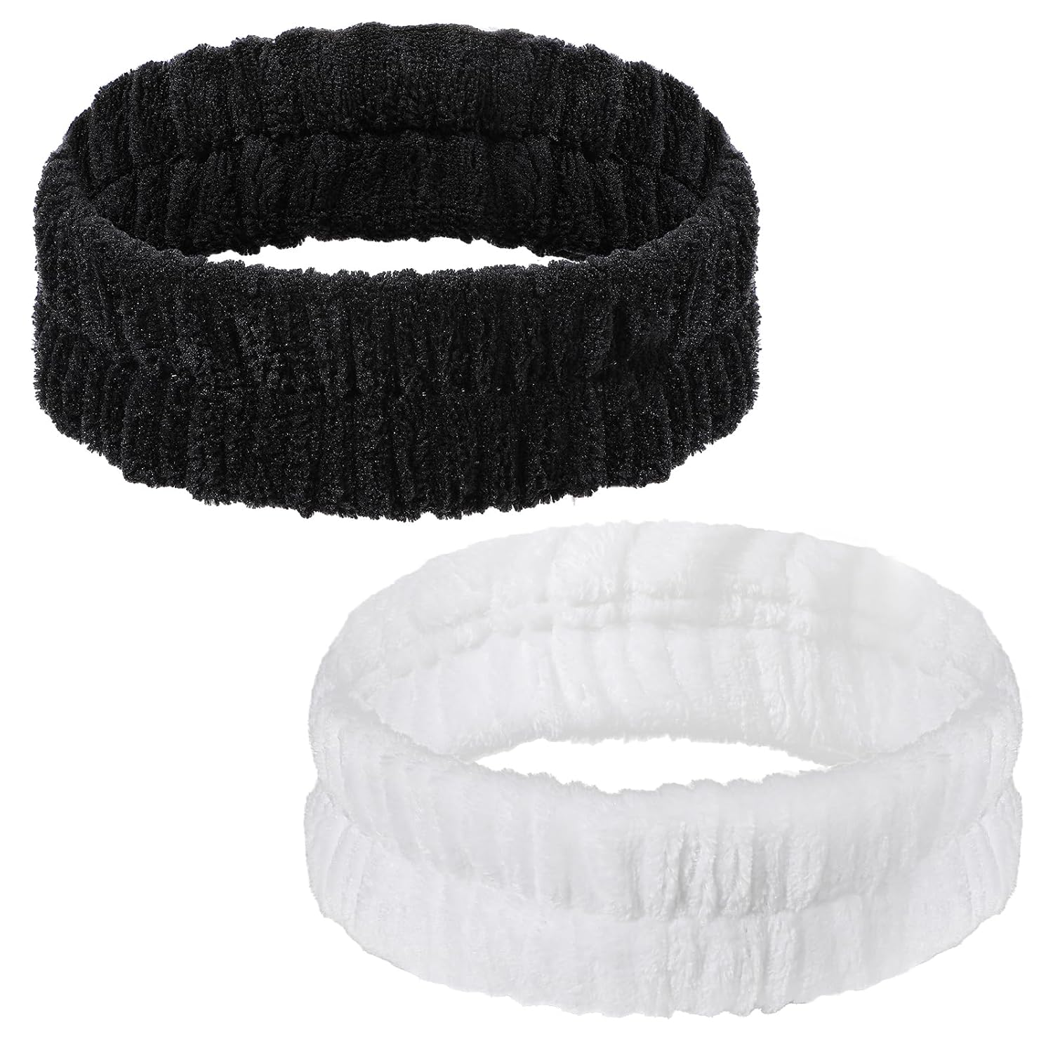 2Pcs Spa Headband, Makeup Headband for Washing Face Hair Headbands Hair Bands Men Skin Care Headbands for Women Yoga Sports Shower Exercise (Black and White)